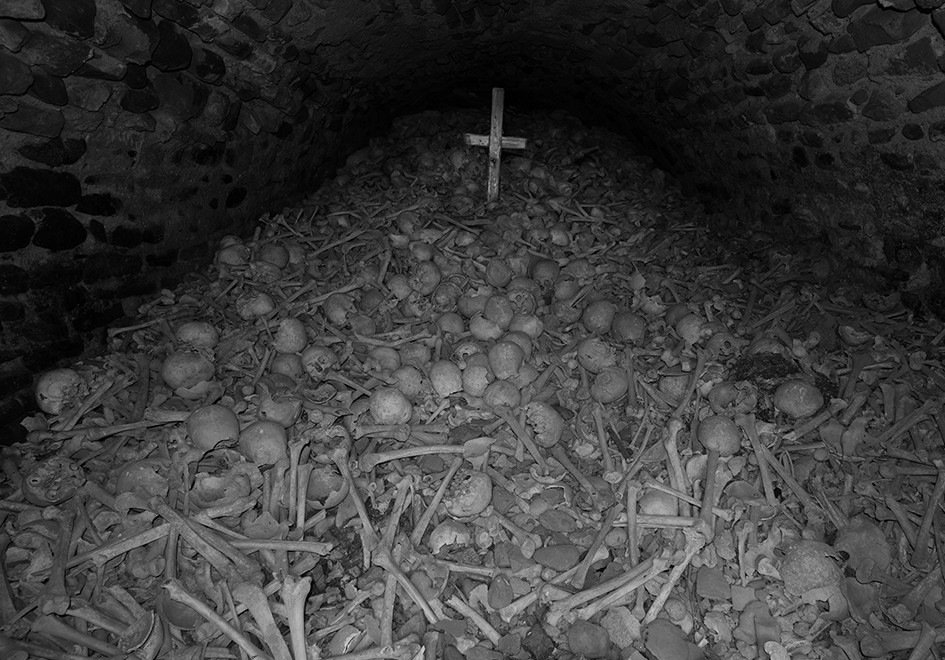 „Wir waren was ihr seid -Ihr werdet was wir sind.“ Schädelhaufen unter der Kapelle DAMBACH LA VILLE.