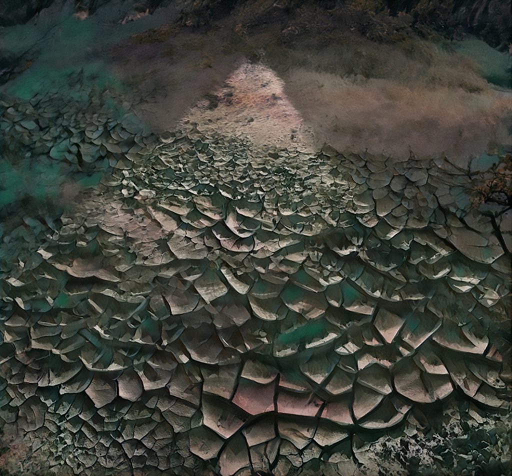 GALAKTIKA entstand während der Corona Epedemie 2020 aus Fotos verschiedenster Oberflächen, Grafiken und Gemaltem.