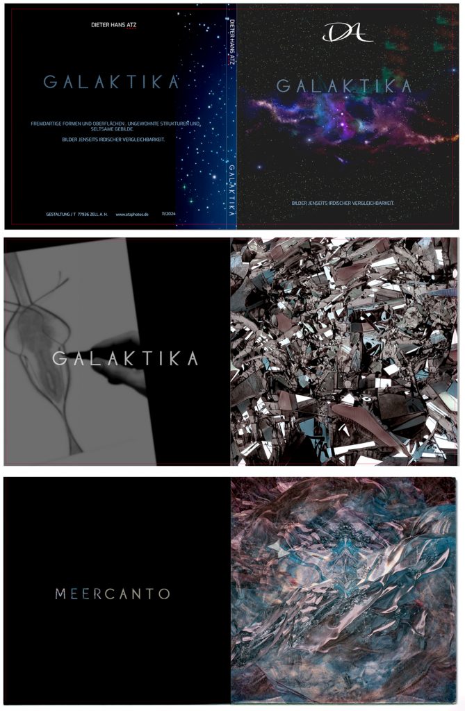 Nach wochenlanger Kontaktarmut und Reiseeinschränkungen sowie der Ungewissheit, wie weit dieser Umstand unser aller Zusammenleben noch beeinträchtigen würde, suchte ich nach einer Ablenkung und Aufgabe. Da ich auch keine Freude am fotografieren von maskierten Mitmenschen empfand und mir die Motive in dieser Zeit „nicht vor die Füße gelegt „wurden, beschloss ich diesen unliebsamen Planeten – wenigstens im „Geiste “ zu verlassen“ und Bilder zu schaffen, die nichts mit Motiven gemein haben, die uns umgeben.