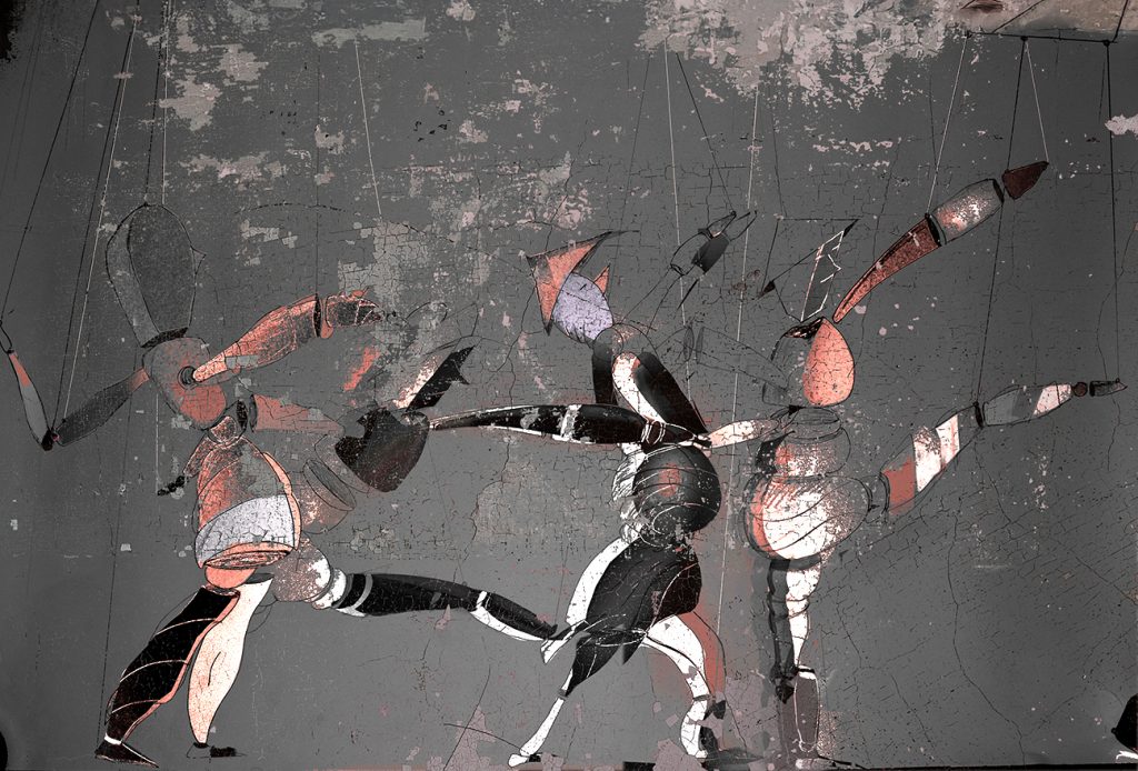 “ MARIONETTENPARADE“ Bleistiftzeichnung – coloriert / 2017